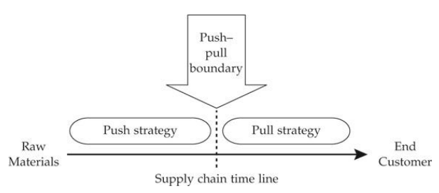 In my opinion, an example of buffer inventory is the push-pull boundary, which acts as the interface between push-based and pull-based stages in production. This boundary is covered by inventory, serving to regulate the differing speeds of push and pull within the system.